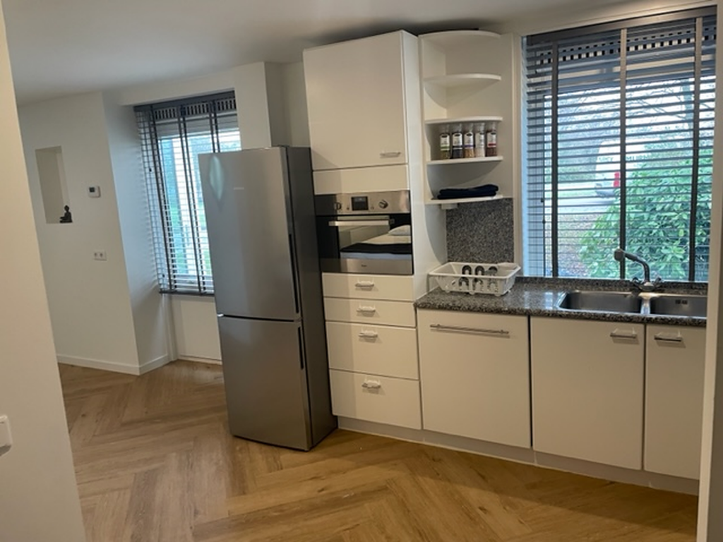 Auto’s kunnen geparkeerd worden op eigen oprit, de Retreat betreed u via de overkapte voordeur. Lichte entree met hoge raampartijen, meterkast, garderobe en berging voor het witgoed en een wastafel. Aan je linkerhand bevindt zich een woonkamer met toegang tot een slaapkamer en een toilet met fonteintje. De trap naar het souterrain bevindt zich in deze woonkamer. Direct aan je rechterhand bevindt zich de woon-/eetkamer met open keuken. Deze heeft grote raampartijen en een erker met een schitterend, blijvend vrij uitzicht. De L-vormige keuken heeft witte fronten en de volgende apparatuur is aanwezig: een vaatwasser, een oven en een inductiefornuis. In deze ruimte, tegenover de keuken, tref je de eigentijdse badkamer aan. De badkamer is voorzien van een zwevend toilet, inbouwspots en een inloopdouche met regendouche. Op de gehele verdieping ligt een splinternieuwe pvc vloer met visgraatmotief en de muren en plafonds zijn strak afgewerkt.