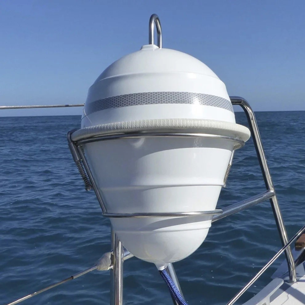 De Swi-TEC ankerboei met automatische neuringlijn markeert je ankerpositie veilig en duidelijk. De lijn rolt automatisch op tot maximaal 20 meter diepte, zodat de boei altijd recht boven het anker blijft. De opvallende, reflecterende band biedt zichtbaarheid overdag én ‘s nachts. Dankzij de stevige constructie van hoogwaardig kunststof en RVS A4V is de boei duurzaam en betrouwbaar. De roestvrijstalen beugel maakt het eenvoudig om de boei aan boord te nemen.